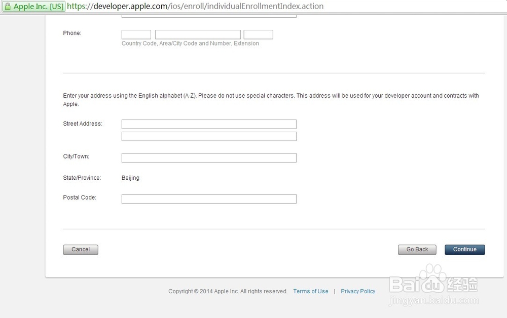 12、输入你的信用卡账单地址,确保正确,否则审核可能无法通过!如下图所示